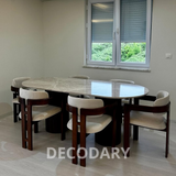 La chaise DONA de salle à manger contemporaine par Decodary allie avec finesse l’élégance intemporelle du bois massif à la douceur d’une tapisserie raffinée. Sa structure robuste en bois, soigneusement sculptée, offre une solidité discrète, tandis que l’assise et le dossier rembourrés apportent une touche de confort sophistiqué. Avec ses lignes simples et ses proportions harmonieuses, cette chaise incarne un minimalisme chic, parfaite pour sublimer une salle à manger moderne ou un intérieur raffiné.