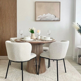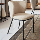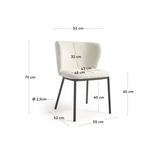 La chaise Mila sublime vos espaces avec son tissu bouclé blanc et ses pieds en acier noir. Son design intemporel s'adapte parfaitement aux salles à manger, bureaux ou coins détente. Conçue pour durer, elle offre un confort inégalé et un style moderne.